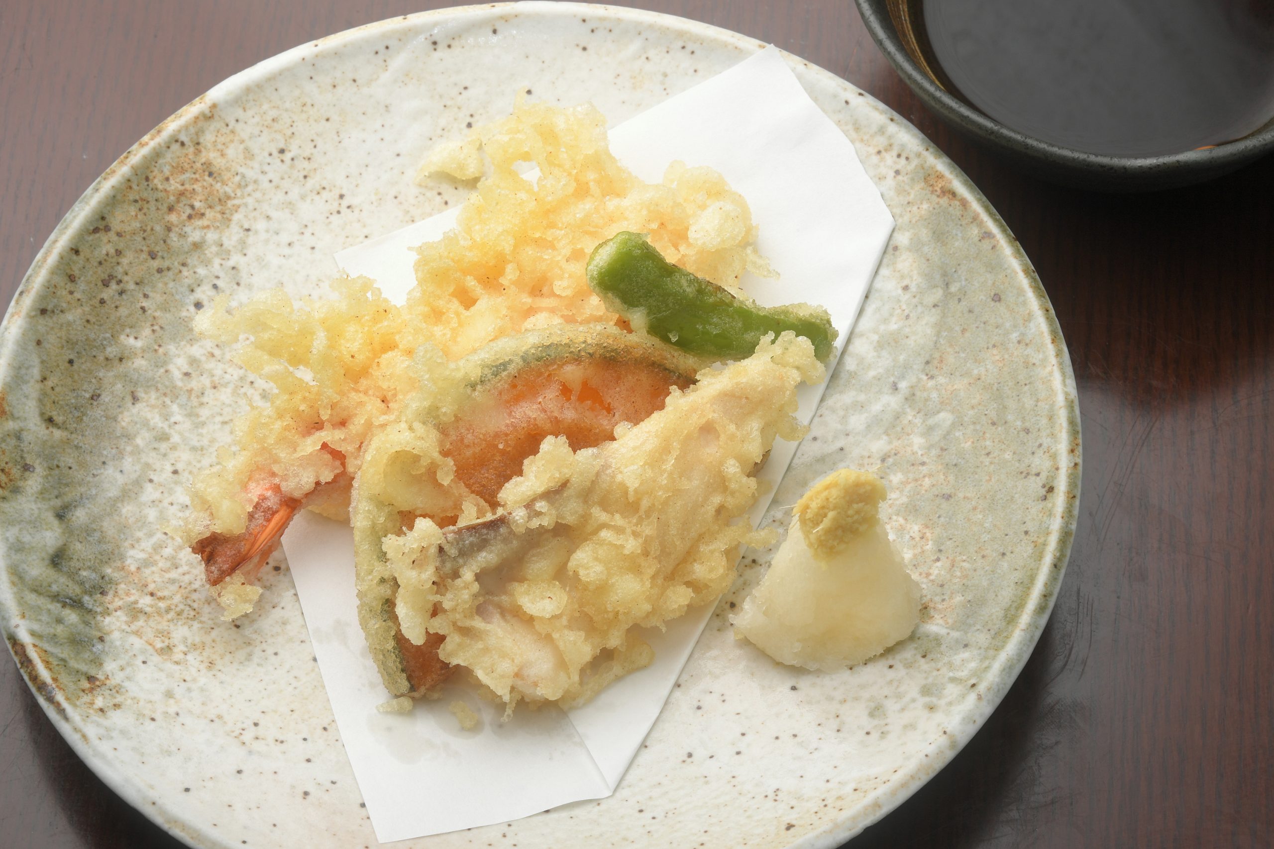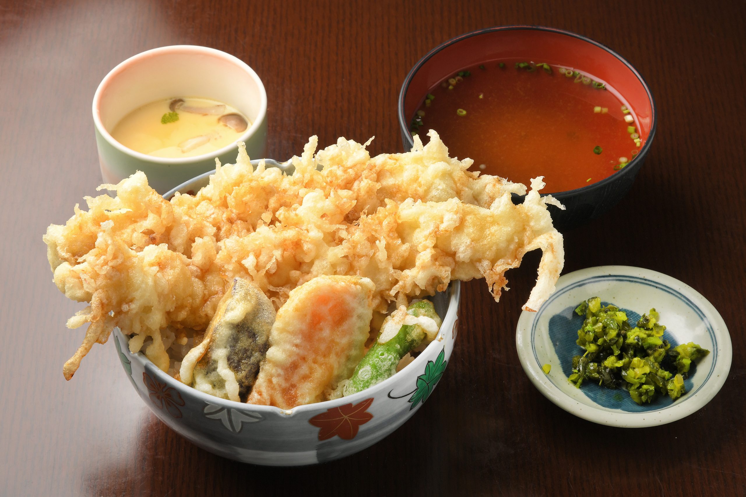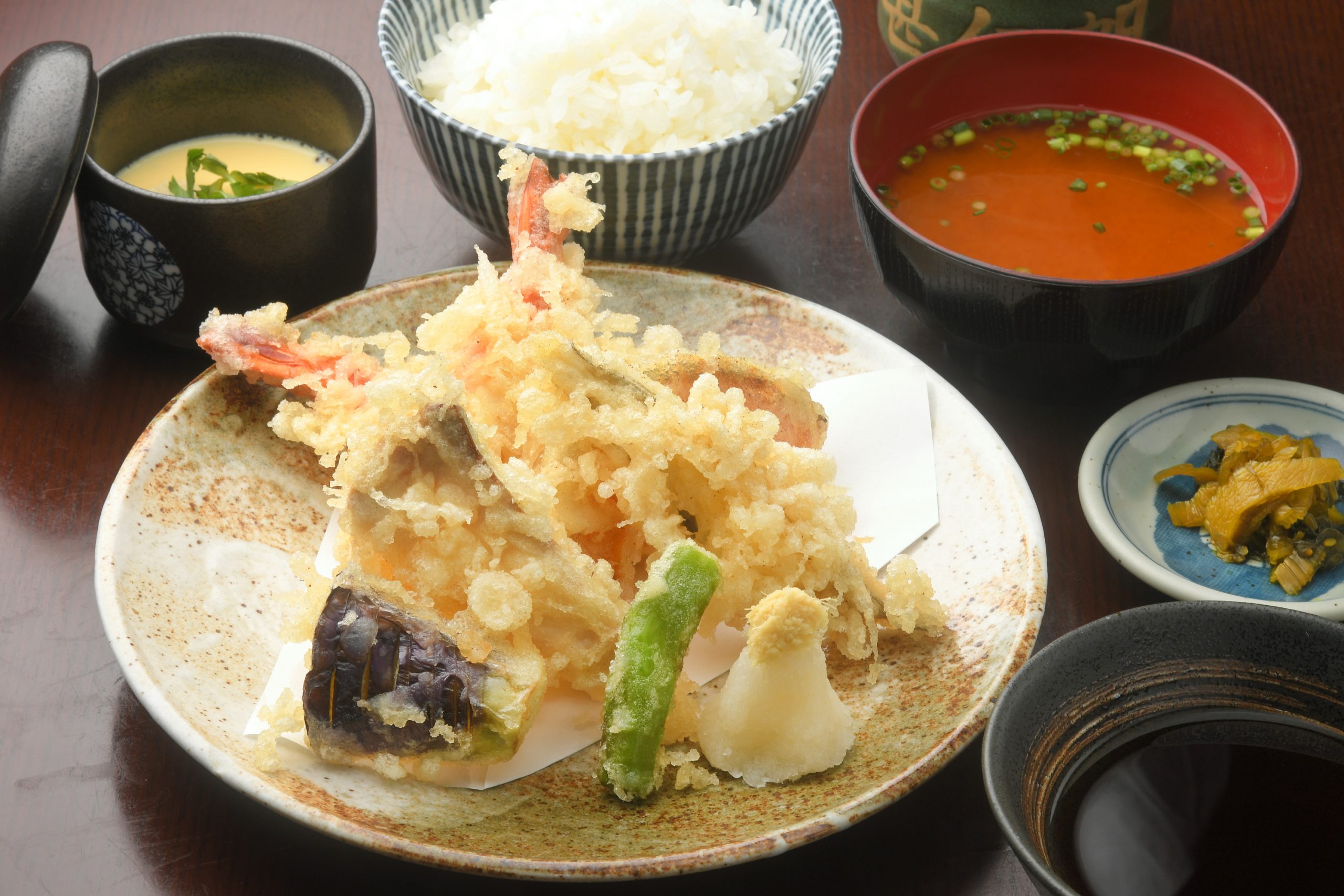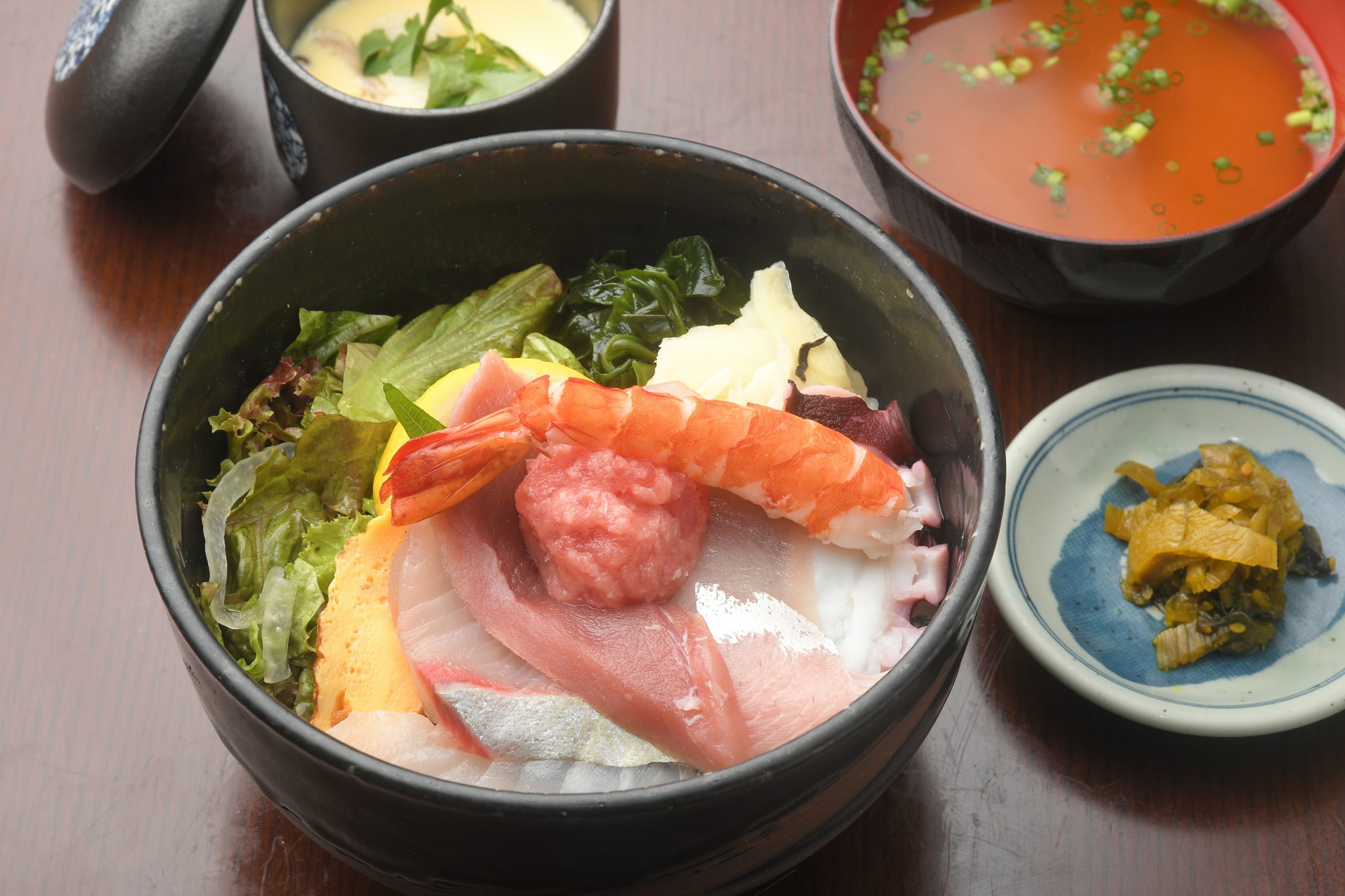 您可以悠闲地享用包含海鲜沙拉、刺身、天妇罗、水煮鱼、握寿司,当然还有茶碗蒸和一碗米饭的午餐。