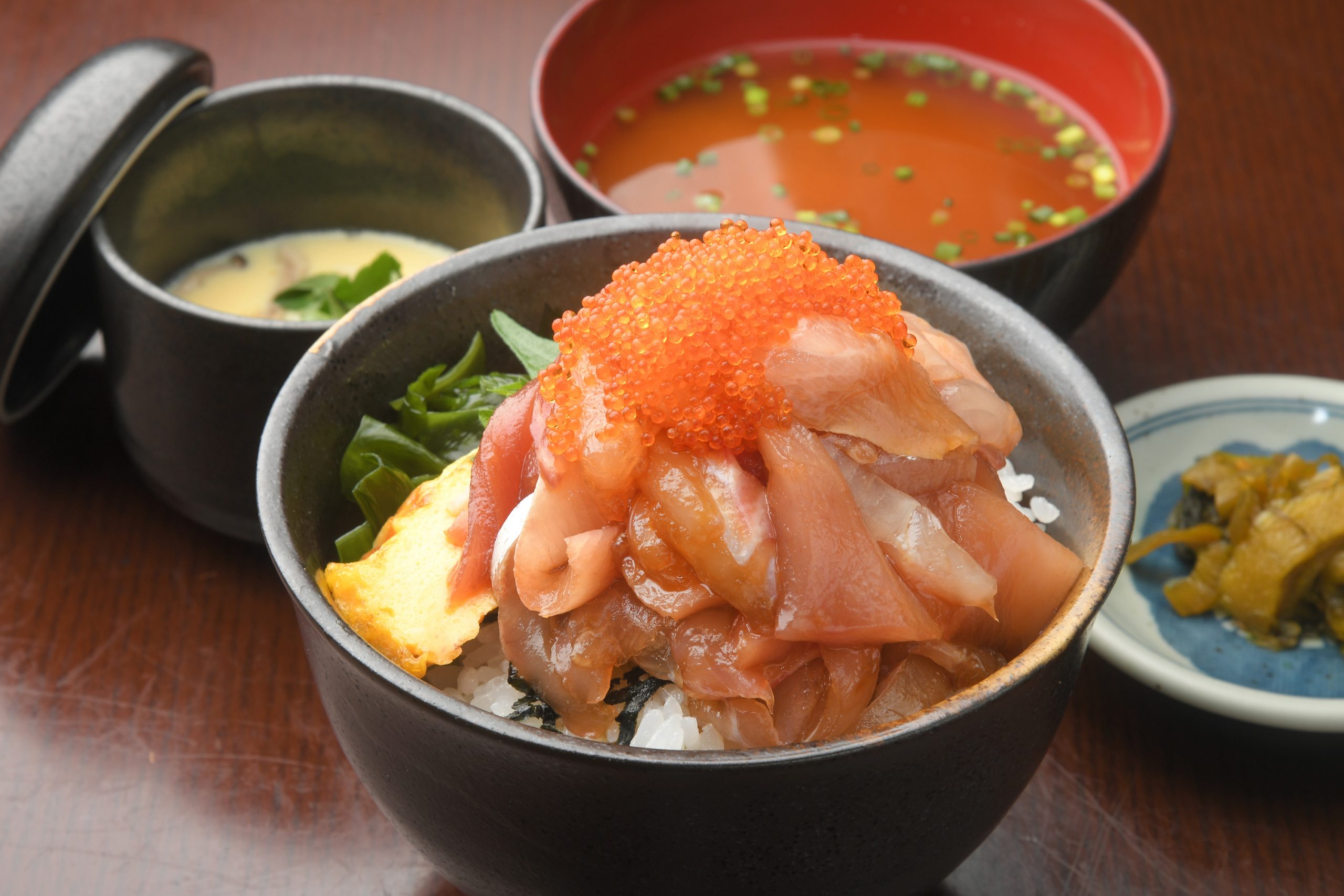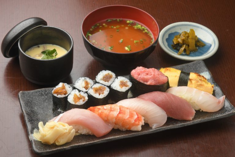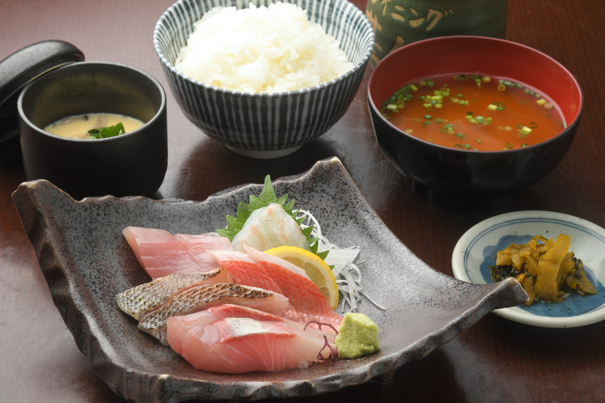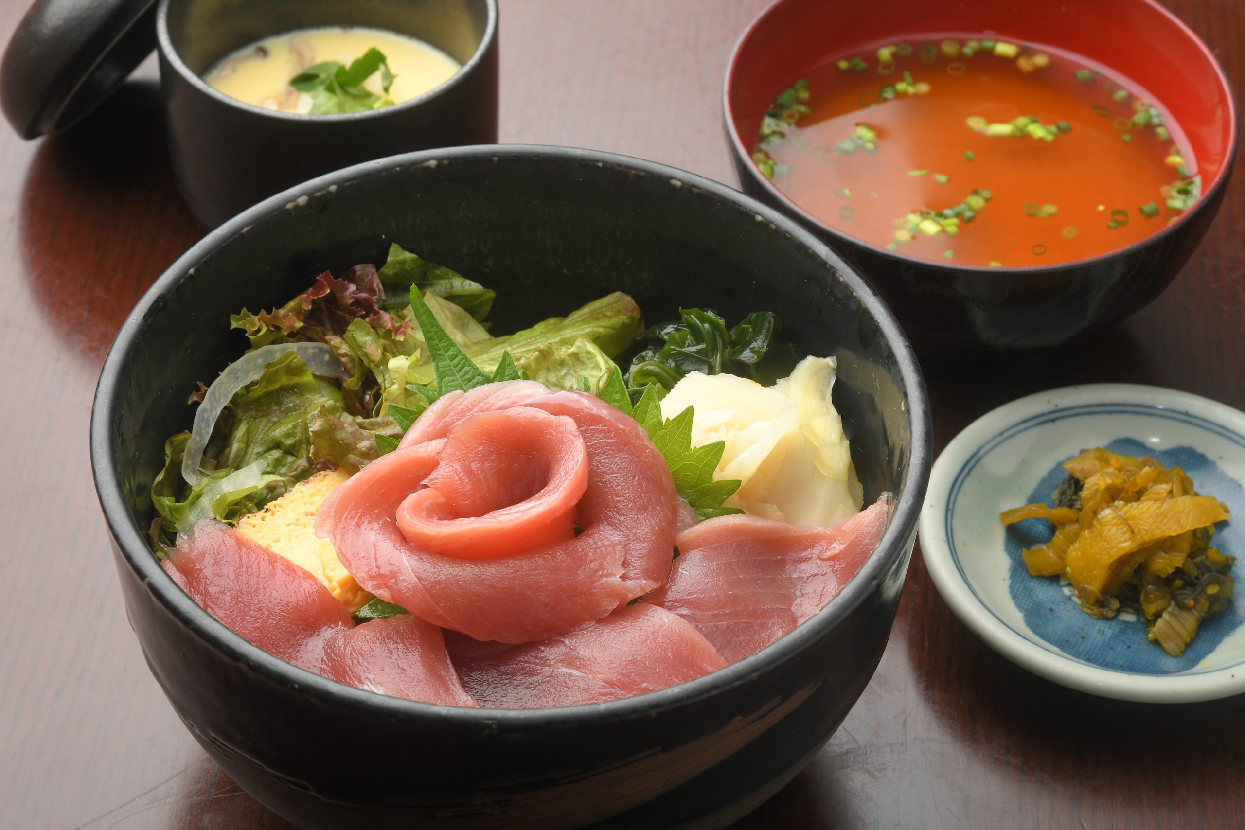 您可以悠闲地享用包含海鲜沙拉、刺身、天妇罗、水煮鱼、握寿司,当然还有茶碗蒸和一碗米饭的午餐。