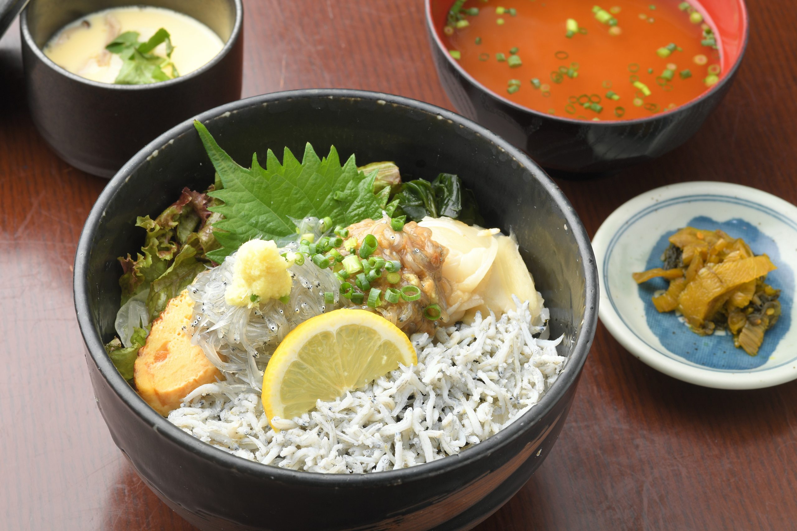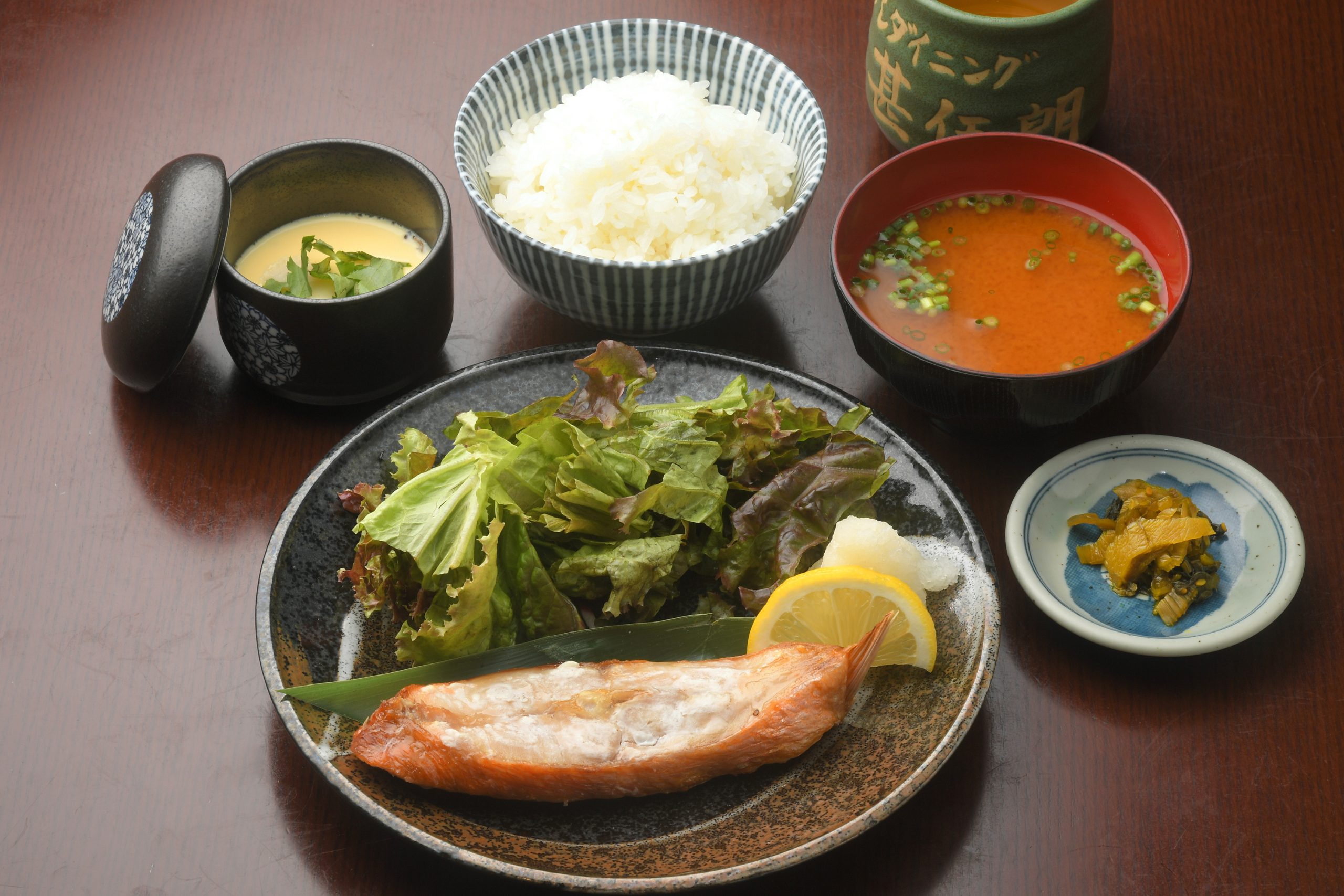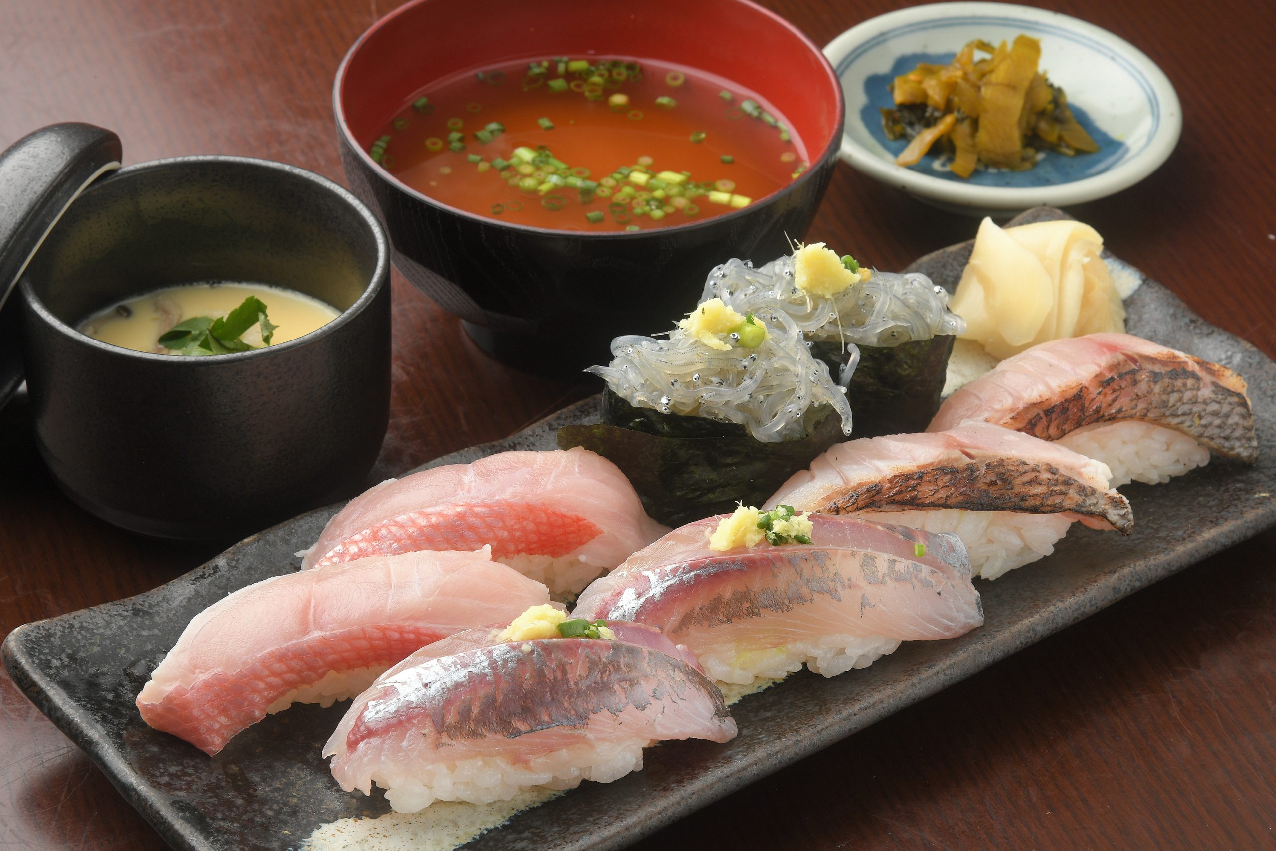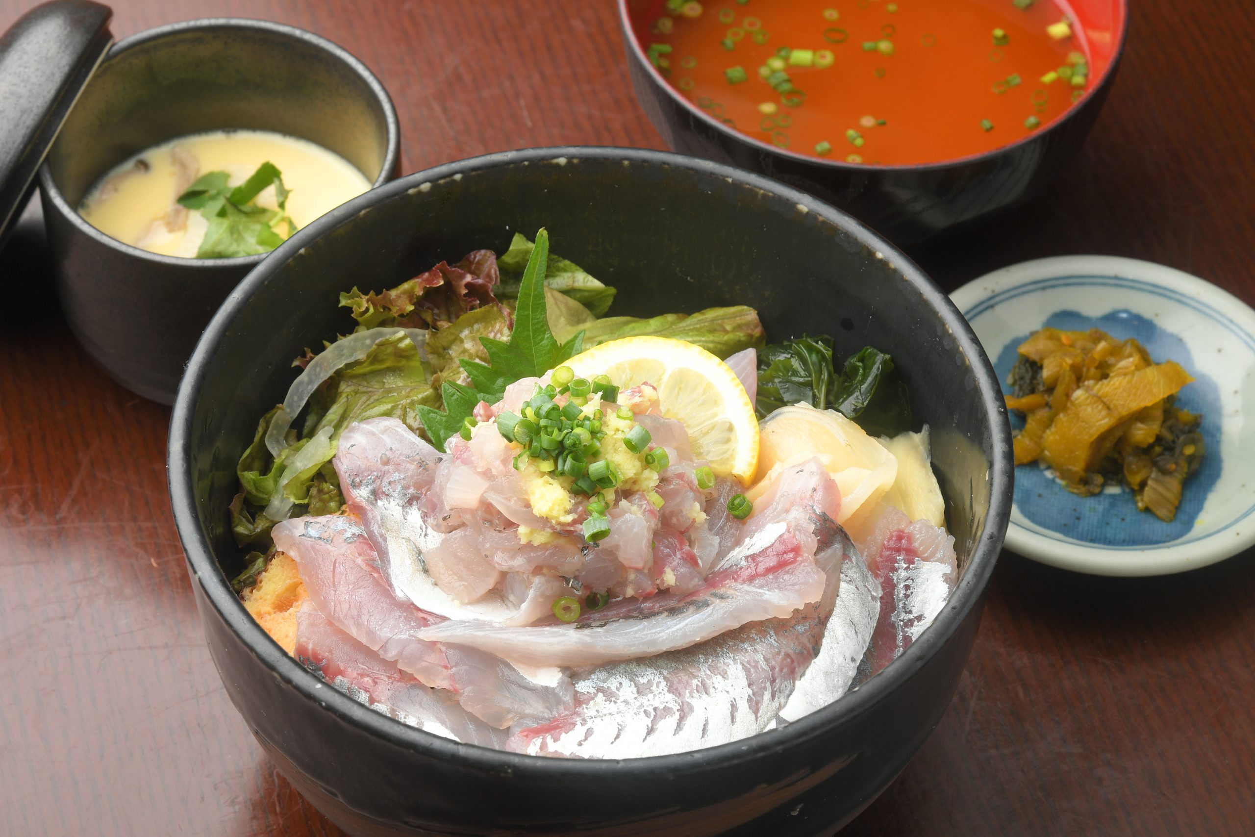 您可以悠闲地享用包含海鲜沙拉、刺身、天妇罗、水煮鱼、握寿司,当然还有茶碗蒸和一碗米饭的午餐。